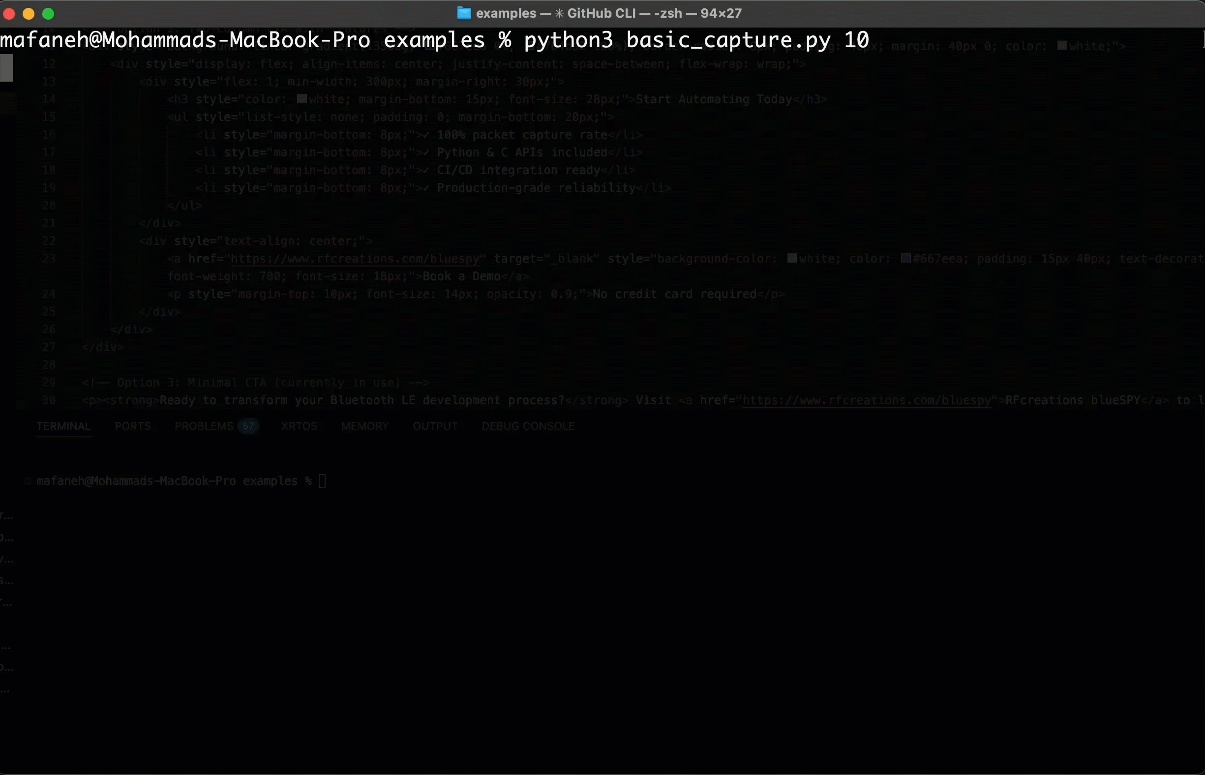 RFcreations' blueSPY (the interface to RFcreations sniffers) addresses these challenges through comprehensive automation capabilities. Unlike software-based sniffers that miss packets due to OS scheduling limitations, or basic hardware analyzers with limited scripting support, blueSPY combines professional-grade hardware with extensive Python and C APIs. This enables development teams to create sophisticated automated testing pipelines, continuous integration workflows, and comprehensive regression test suites.