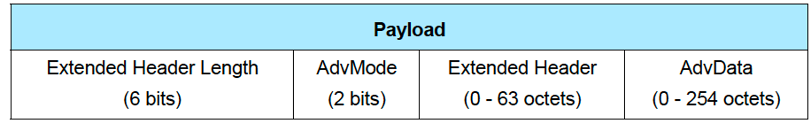 Notice that extended advertising packets utilize just two PDU types (ADV_EXT_IND + AUX_ADV_IND) to support the many types of advertising events by utilizing a field included in the PDU header.