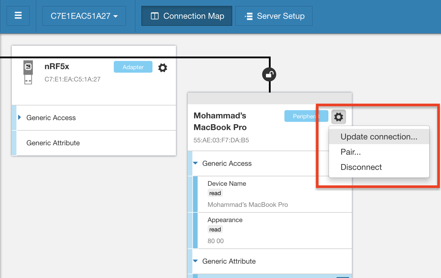 Another feature available is the ability to change the properties of the connection (since the dongle acts in the central role, and hence it controls the parameters) such as: